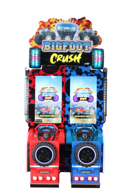 UNIS | BigFoot Crush | 2-Player | Dual 32-inch HD Screens | Steering Wheels | Racing Arcade Game