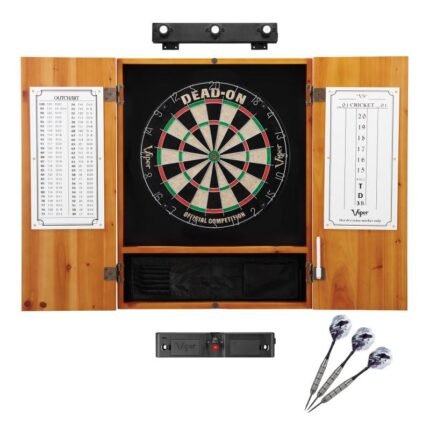 Viper Dead On Sisal Dartboard, Metropolitan Oak Cabinet, Shadow Buster Dartboard Lights & Throw Line Marker Bundle Viper Dead On