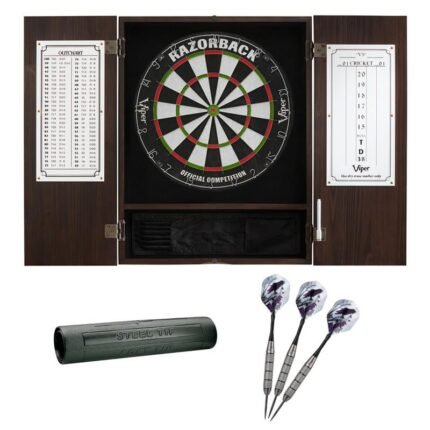 Viper | Espresso Metropolitan Steel Tip Cabinet | Razorback Sisal Dartboard | Underground Raven Steel Tip Darts 25 Grams | Laser Throw Line | Vinyl Dart Mat