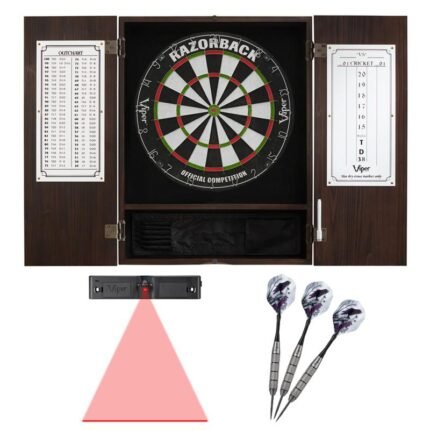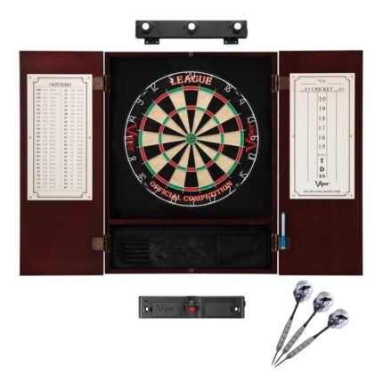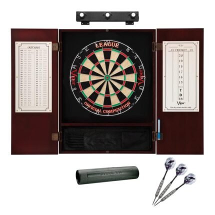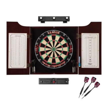 Viper League Dartboard Bundle with Laser Throw LineIncludes: Viper League Sisal Dartboard, Metropolitan Mahogany Cabinet, Shadow Buster Lights, Laser Throw