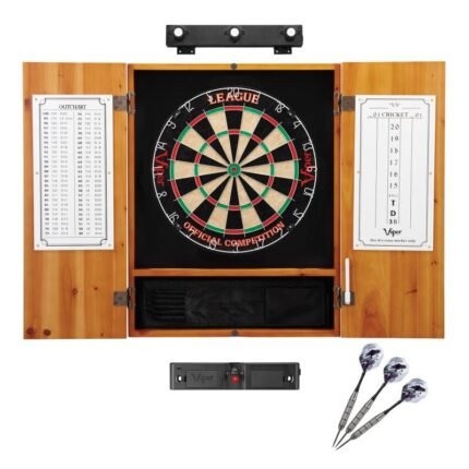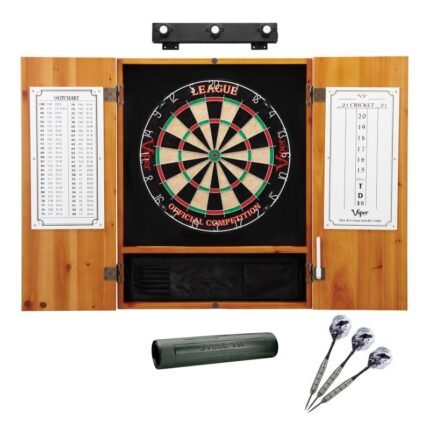 Viper League Sisal Dartboard, Metropolitan Oak Cabinet, Shadow Buster Dartboard Lights & Laser Throw Line Marker Bundle Step up your