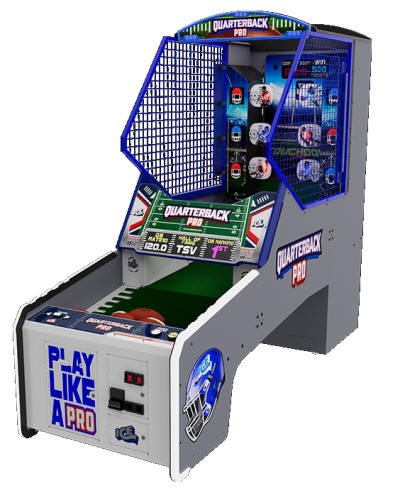 Score a touchdown with Quarterback Pro HIT DON’T MISS!Footballs will dispense from the built-in conveyer belt. Players skillfully throw footballs