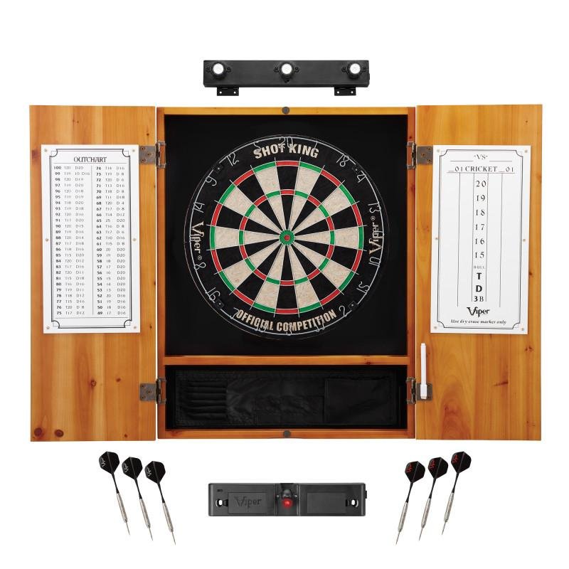 Viper | Shot King Sisal Dartboard | Metropolitan Oak Cabinet | Shadow Buster Dartboard Lights & Laser Throw Line Marker