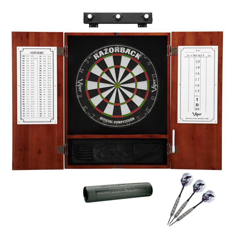 Viper Razorback Dartboard Bundle with Cabinet, Lights, Mat & Steel Tip Darts