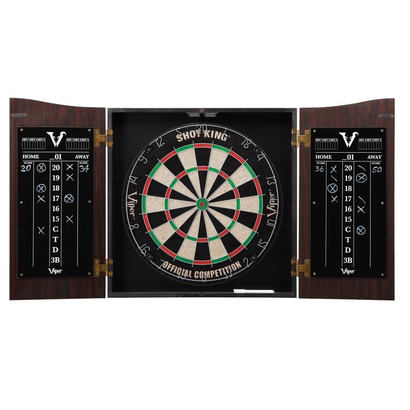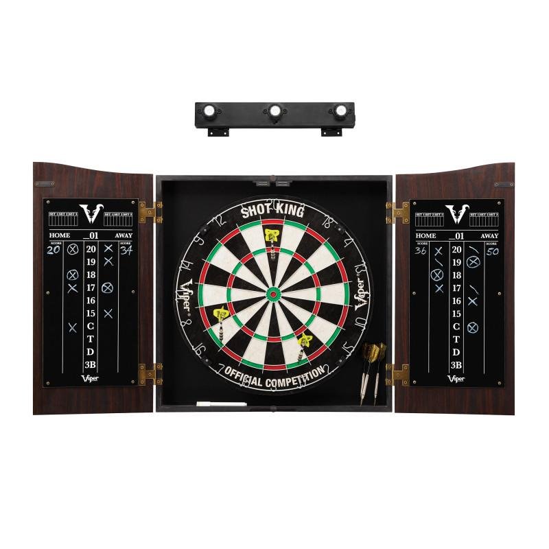Viper | Vault Cabinet with Shot King Sisal Dartboard | Shadow Buster Dartboard Lights | Steel Tip Dart Accessories Kit | The Bull Starts Here | Throw Line Marker | Padded Dart Mat