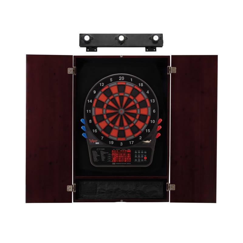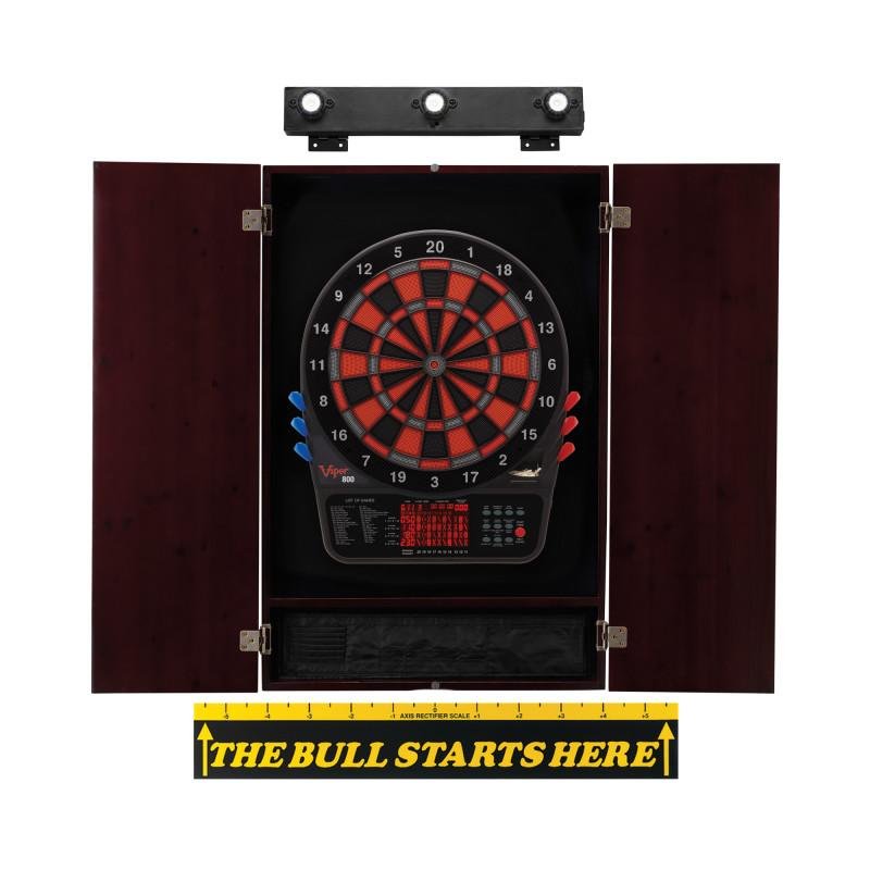 Viper | 800 Electronic Dartboard | Metropolitan Mahogany Cabinet | Laser Throw Line Marker | Padded Dart MAt | The Bull Starts Here | Shadow Buster Dartboard Lights