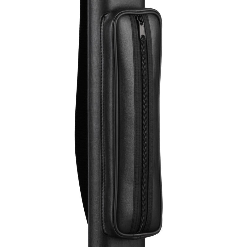 The ultimate solution in cue transportation is Casemaster Q-Vault, with its classic leatherette exterior engineered to repel the elements and keep your cues in the perfect dry conditions and safeguarding them from warping. Inside, the hard resin shell is covered in a soft cloth lining, bolstering your cues against heavy impacts and preventing cracking and breaking. The Q-Vault is your total solution for a night out at the pool hall or your buddy’s man cave as it has two large pockets that are perfect for holding all of the accessories you might night to dominate the competition, such as extra tips, shapers, chalk and other repair tools. The Q-Vault features a handy carrying handle and strap for convenient, easy transport. The Classic Q-Vault is able to store one butt and one shaft.
