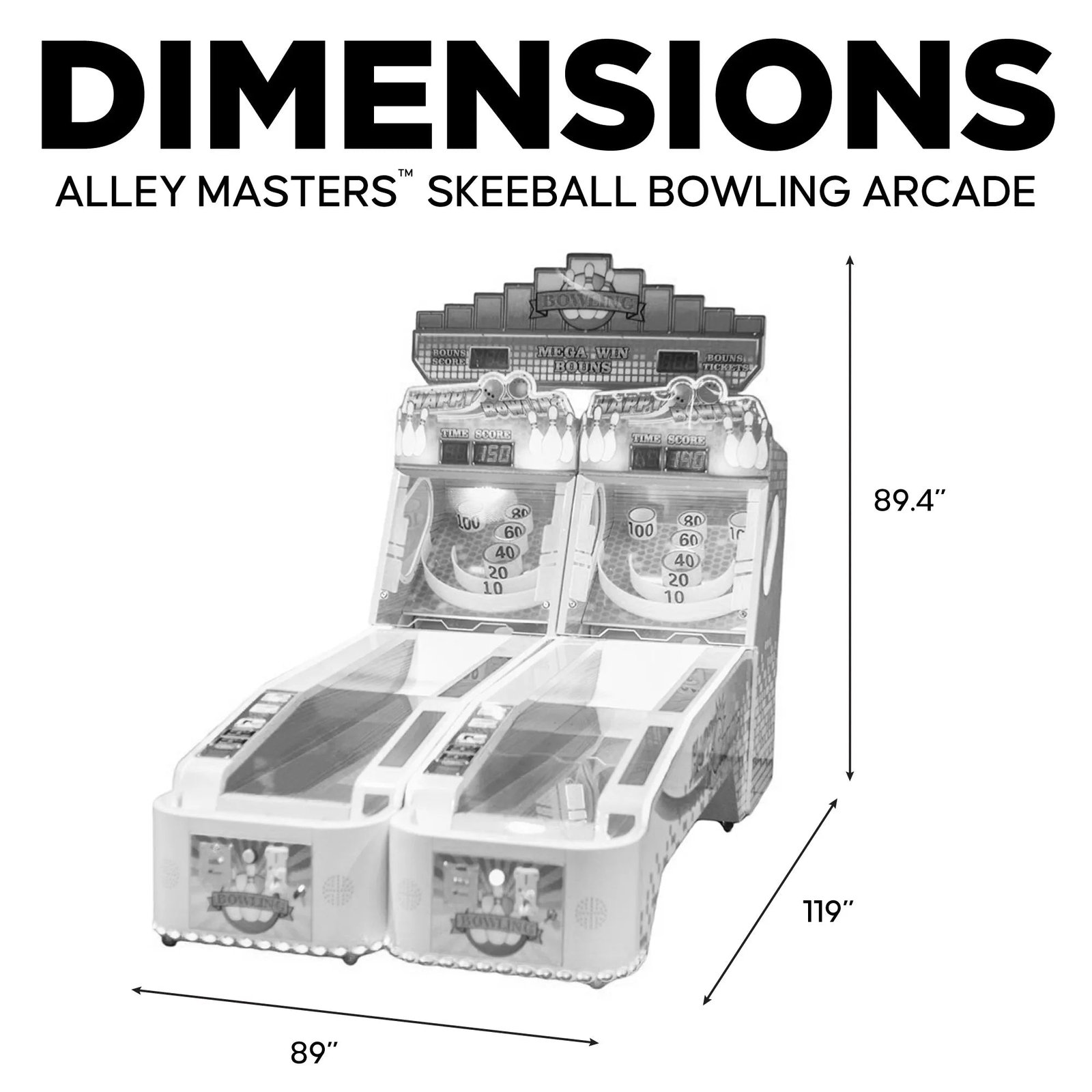 Alley Masters™ Skeeball Bowling delivers the perfect fusion of classic skeeball excitement and bowling-style competition in a commercial-grade arcade attraction built to drive repeat play and revenue. Players roll balls with precision into strategically placed scoring holes while an electronic scoreboard tracks every point, triggering dazzling LED lighting effects and immersive sound effects that energize the entire arcade. Designed for high-traffic locations, this coin-operated skeeball bowling machine supports two-player or three-player gameplay and is fully linkable, allowing multiple lanes to connect so friends, families, and groups can compete side by side. With ticket redemption driven by score-based lottery draws and a sleek, professional presence, Alley Masters Skeeball Bowling is a must-have for arcades, family entertainment centers, bowling alleys, and game rooms looking to elevate their skeeball arcade lineup.
