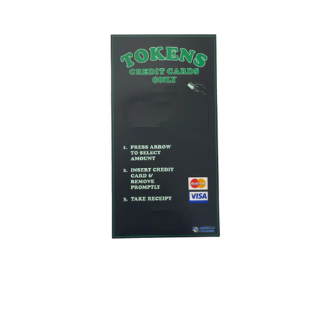 The front decal (Tokens) for the AC2007 token dispenser is black and comes with acceptance stickers.