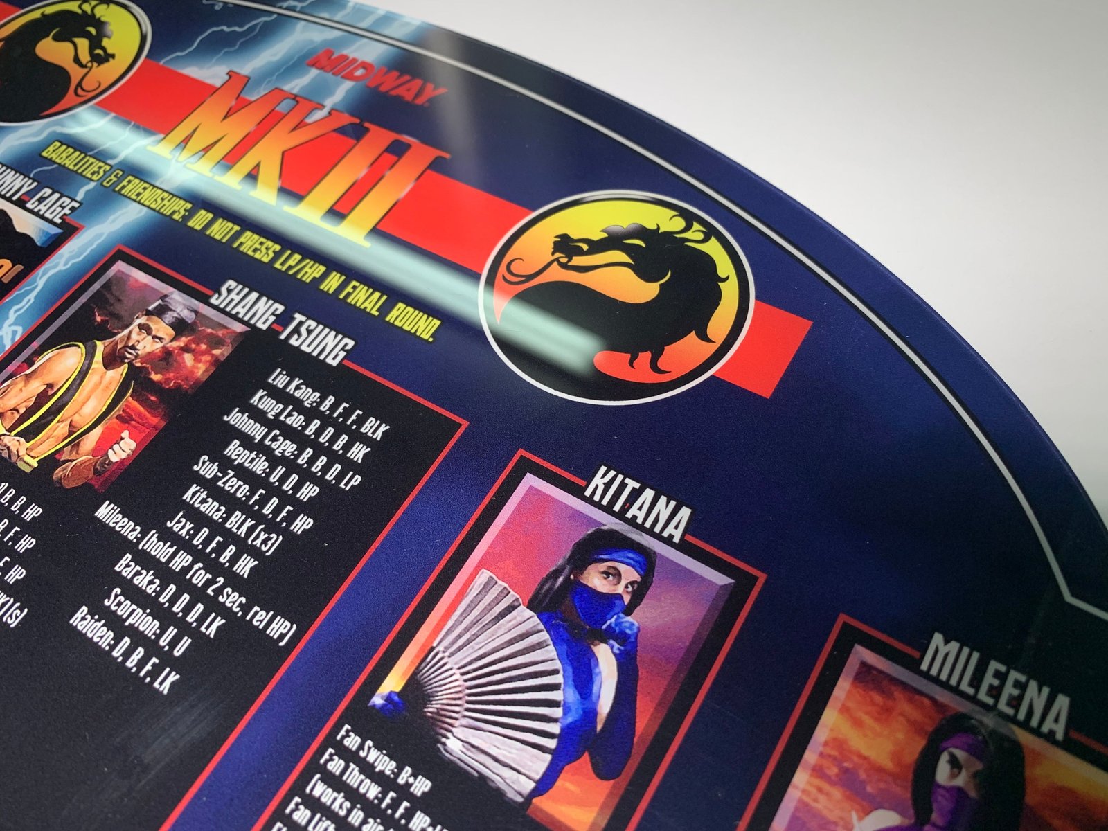 As promised now available for the Mortal Kombat 2 fans. This is a Szabo’s exclusive product, custom designed to fit Arcade 1Up cabinets. No screws required mounts in under a min. All your favorite character moves just a glance away. In photos your looking at also a new marquee, the originals on most of the 1up where not as vibrant and very dark I color. Marquee sold separately.