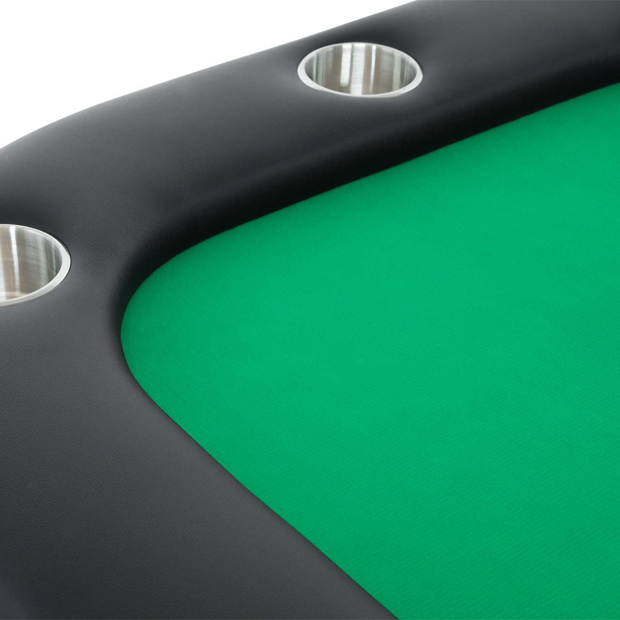 The poker table features a distinct rectangular shape with a 7″ removable armrest with 4 inch cup holders, premium half inch poker foam and a conversion dealer position similar to our Premier poker table. The purpose of the conversion dealer position is that as your game progresses and players drop out, someone can take over the conversion dealer position and easily transition to a full time dealer for the remainder of the evening. You can order the Helmsley with a dealer spot or with a continuous arm rest. The Helmsley can be customized with your choice of playing surface including suited speed cloth, armrest vinyl and hardware.