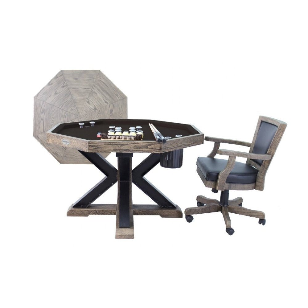 Introducing the Weathered 54″ 3 in 1 Combination Table, your ultimate entertainment center that effortlessly adapts to your every need. With a simple flip of the top, this ingenious table transforms from a dining table to an exciting 8-position poker table.