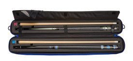The Casemaster Parallax billiard cue case is the ultimate two cue storage solution. It’s made out of 600D Oxford Fabric, a heavyweight material that is exceptionally durable. The Parallax pool cue case is designed to keep your cue safe from absorbing impacts and moisture. The tightly woven fabric repels water, keeping your cue nice and dry. It’s also abrasion-resistant, so it won’t rip apart exposing your cue to the elements. Inside are form-fitting foam slots that gently hold your cue in place, keeping it from rattling during transport. The foam inserts also help absorb impacts, so you don’t need to worry about your cue cracking or warping. The Parallax cue case fits two disassembled pool cues, two butts and two shafts, as well as a spare chalk cube. Cues and chalk sold separately.