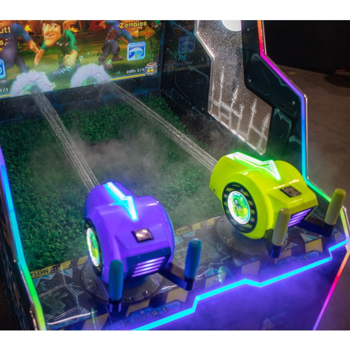 Take aim and shoot water at the video screen to freeze waves of zombies before they overrun your territory! But it’s not just about surviving the apocalypse—strategic water blasts are key to progressing through the game. Collect power-ups, unlock new abilities, and try to maximize your points for more tickets.