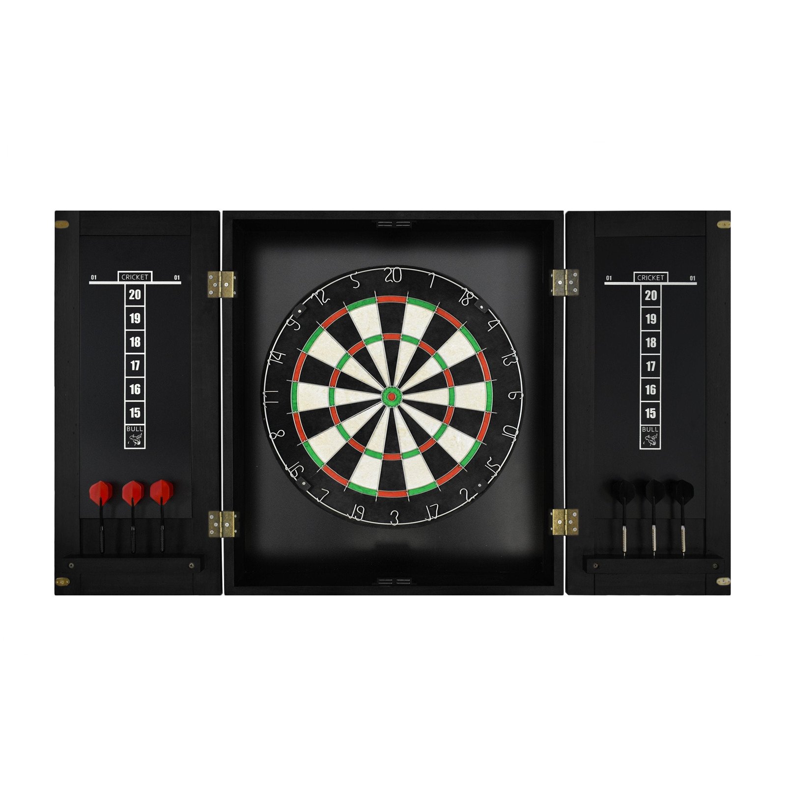 The Imperial Dart Cabinet is made of solid wood and comes complete with an 18″ bristle dartboard, set of 6 darts, pen and eraser, and wall mounting hardware. The Dart Cabinet is featured in six finishes, making it easy to pair with your Imperial pool table or shuffleboard and create the perfect game room. Assembly is simple; just attach the dartboard to the inside of the cabinet, mount the cabinet to the wall of your choice, and you’re ready to play.
