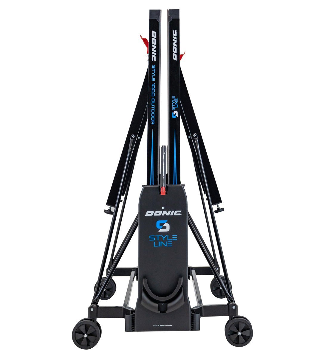 The newly developed Donic Style Line of outdoor tables combines the highest quality and functional demand with an outstanding design. All tables are equipped with an outdoor table tennis net and paddle & ball holder (paddles/balls not included). Pivoting easy-roll wheels, a space-saving construction and a high-quality melamine resin surface complete the premium equipment. All tables are manufactured in Germany according to the highest production standards.