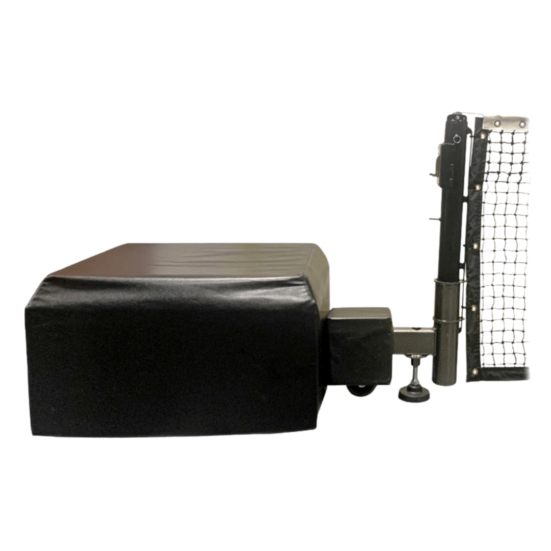 The First Team PortaCourt Sentry™ Portable Tennis Set is the first and only portable tennis set with weighted bases that deliver true competition-level net tension without a stiffening bar running under the net. Each base holds 19 solid concrete blocks for approximately 570 lbs. of ballast per side, giving you a rock-solid court with no floor anchors required.