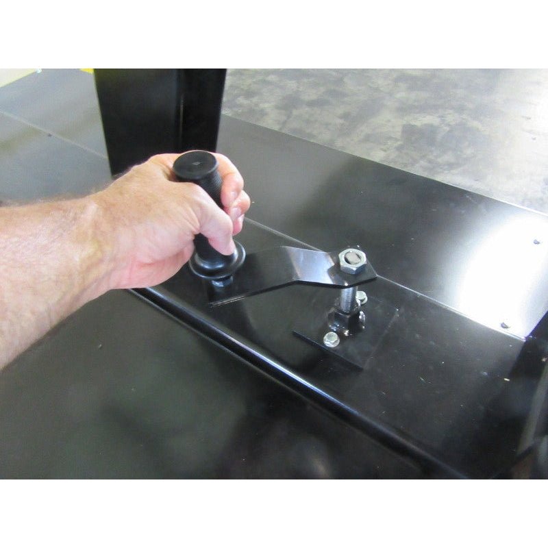 One person can easily move the Thunder portable basketball goal. An easy to grip release crank unlocks the brake and six roller wheels contact the playing surface for smooth portability. The extension arm can quickly drop down to allow the unit to pass under any standard height double doors.
