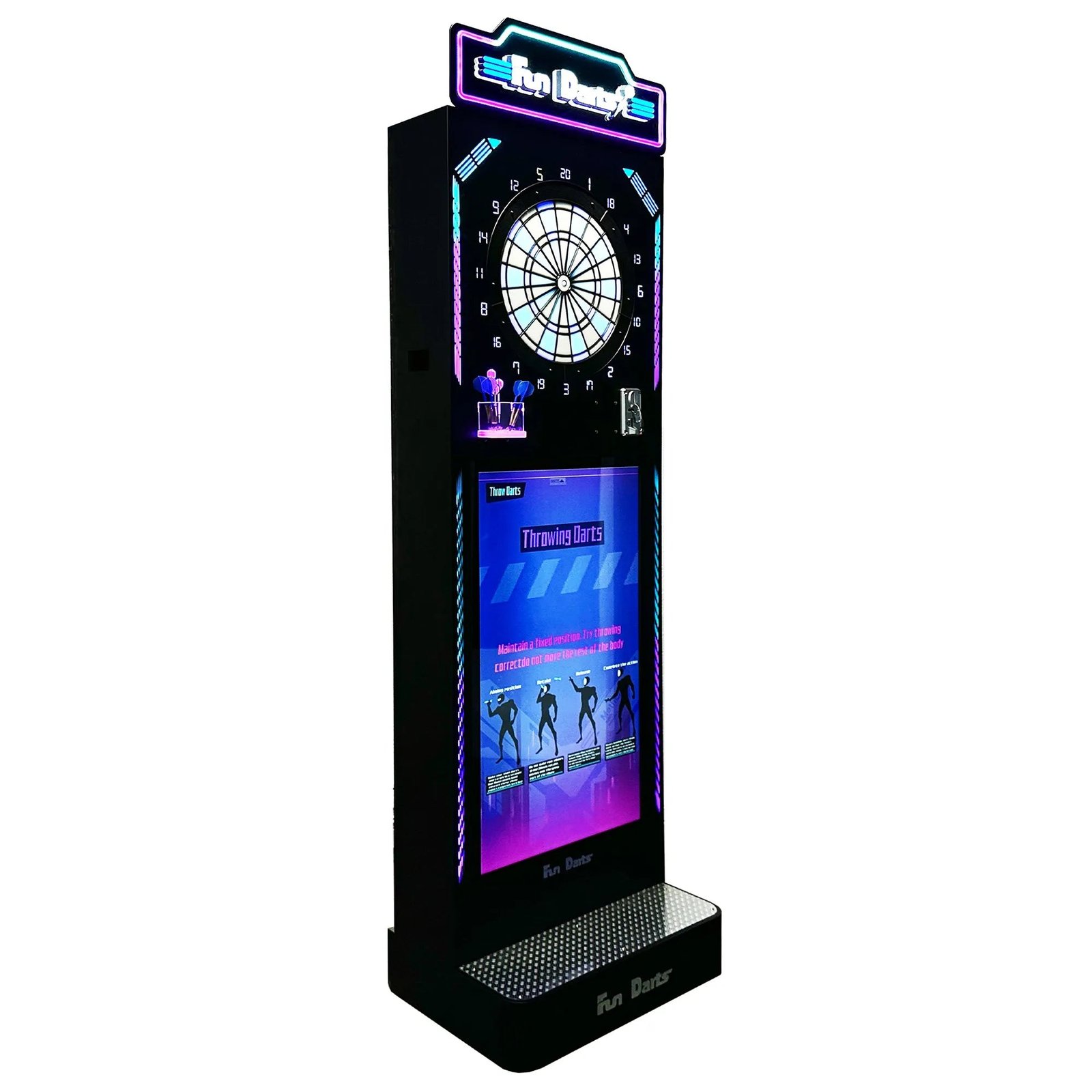 Fun Darts™ is a next-generation electronic dart machine that blends classic pub-style competition with modern connected gameplay and built-in revenue opportunities. Featuring a sleek HD touchscreen display, intuitive controls, and a wide selection of popular dart games, Fun Darts delivers an engaging experience for casual players and serious competitors alike. Its standout Wi-Fi–enabled network play allows players to compete live against opponents at other locations using the same machine, creating true online dart competition. In addition, operators can display advertisements on the digital screen, opening the door to recurring revenue by selling ad space to local businesses or sponsors—making Fun Darts not just an attraction, but a smart earning asset for arcades, bars, and entertainment venues.