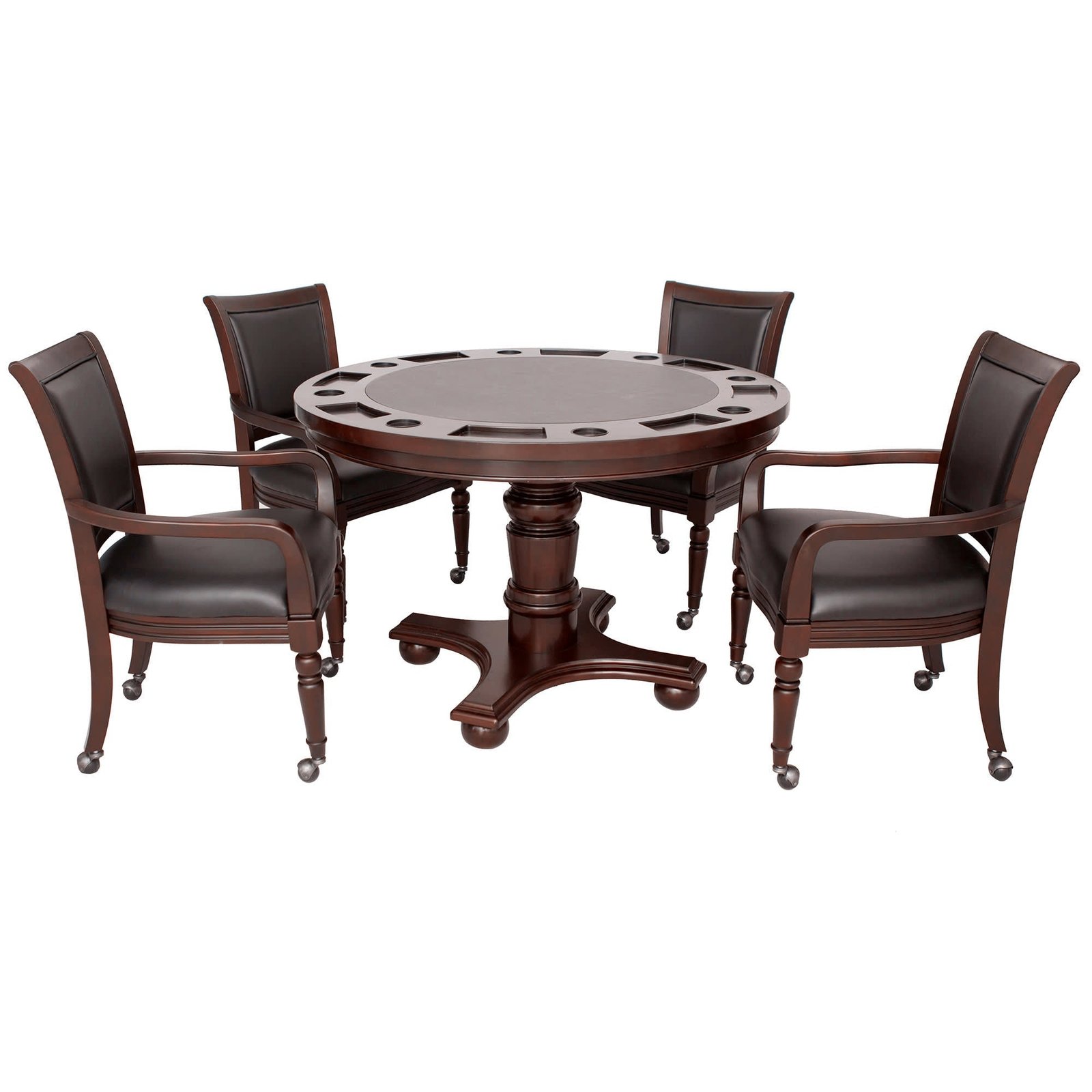 Easily switch from dining to gaming with the Bridgeport Poker Table. Perfect for dinner parties or game night, this dual-purpose set includes a 48-in game table, removable tabletop, and four matching chairs.