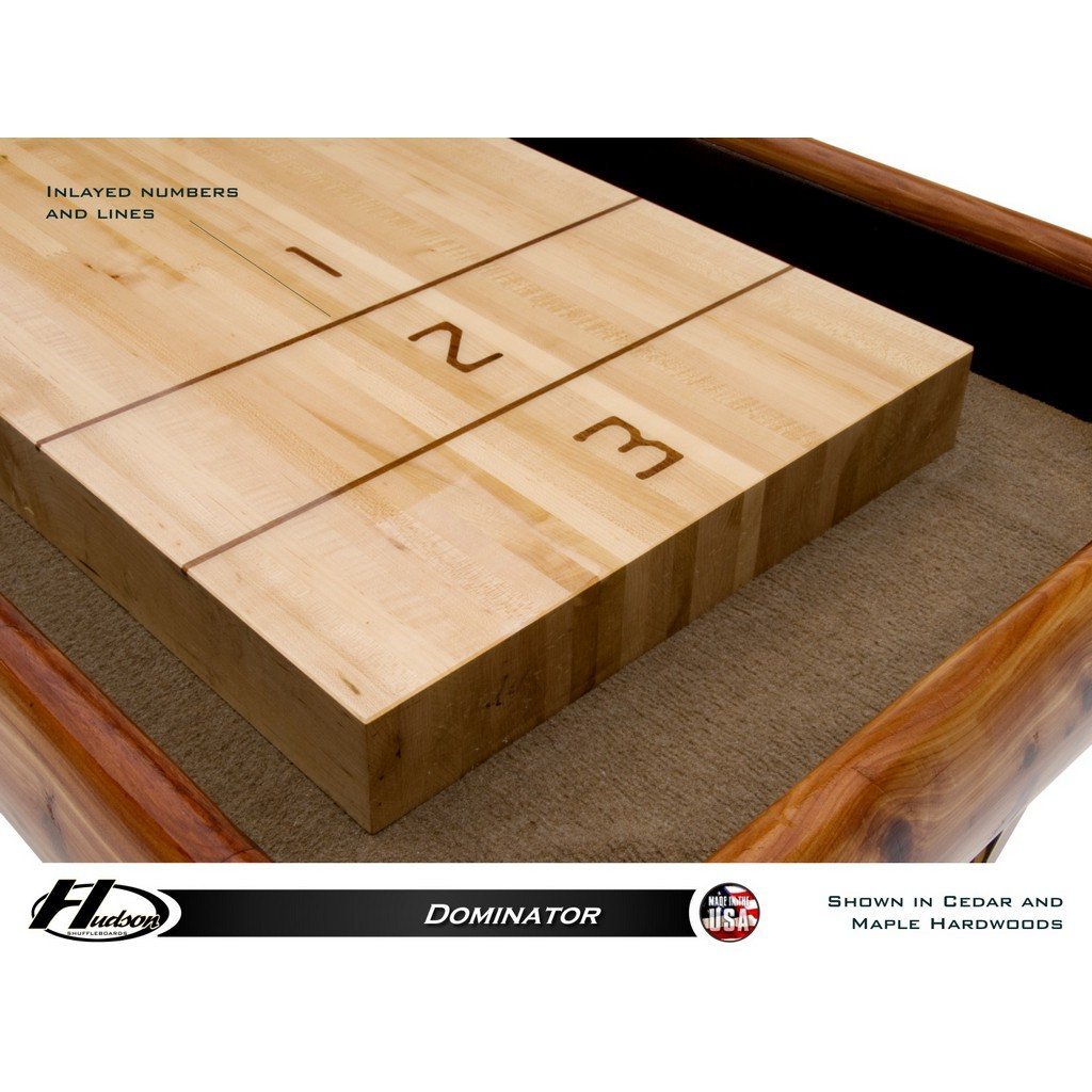 Hudson Shuffleboards is proud to offer the finest shuffleboard on the market today, the Dominator. Sparing no costs for quality, each Dominator is entirely constructed of solid wood and made to order using the finest hard woods available.