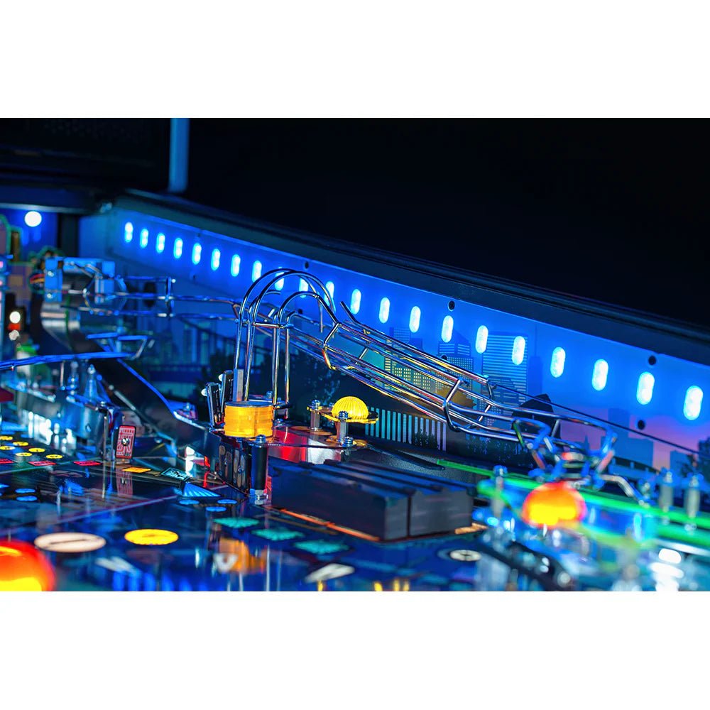 For the Pro and Premium Editions, get immersed into John Wick’s world with the Cabinet Expression Lighting System™ accessory. With 96 intelligent RGB LEDs, the Cabinet Expression Lighting System enables full color spectrum control. Positioned in pockets cut into the cabinet sides to provide color themed full playfield illumination, this integrated playfield lighting system is synchronized to custom light shows and dynamically responsive to game events while featuring exclusive cityscape hand-drawn artwork.
