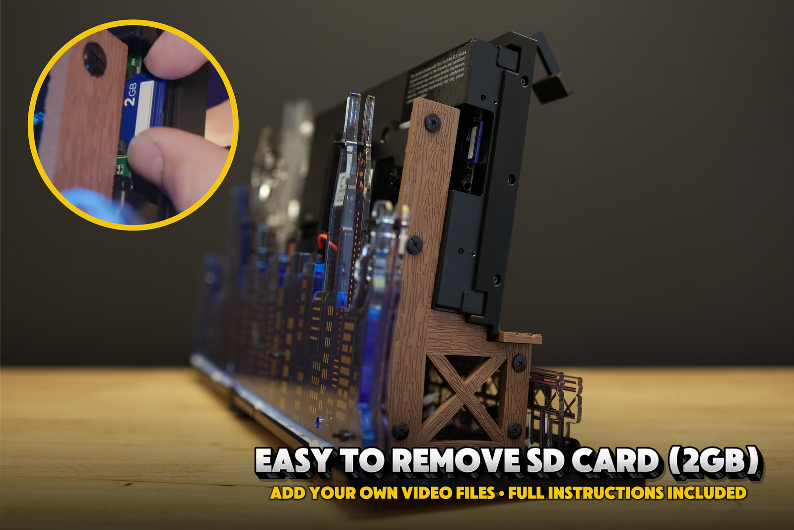 Leveraging the included SD card (2GB), add your own videos from classic King Kong movies to bring the magic of the silver screen to life on top of your game. Videos can be created by you, or found on a dedicated Pinside thread where community members can share their creations. Instructions for adding video here.