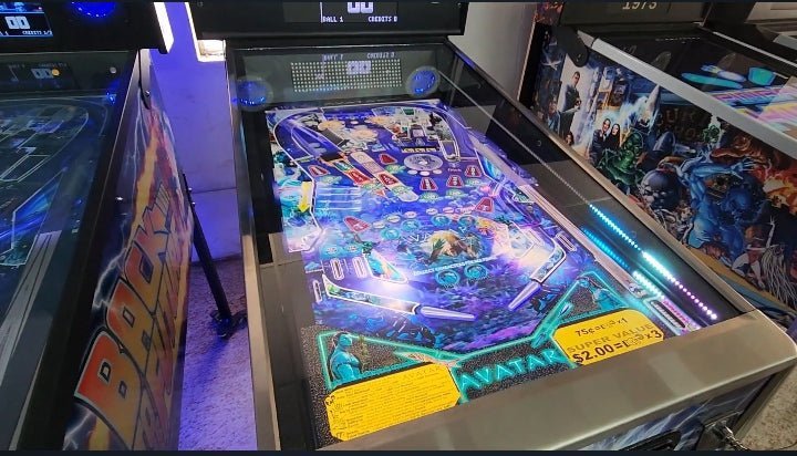• This virtual pinball machine features a 60Hz 43-inch LED 4K playfield screen.