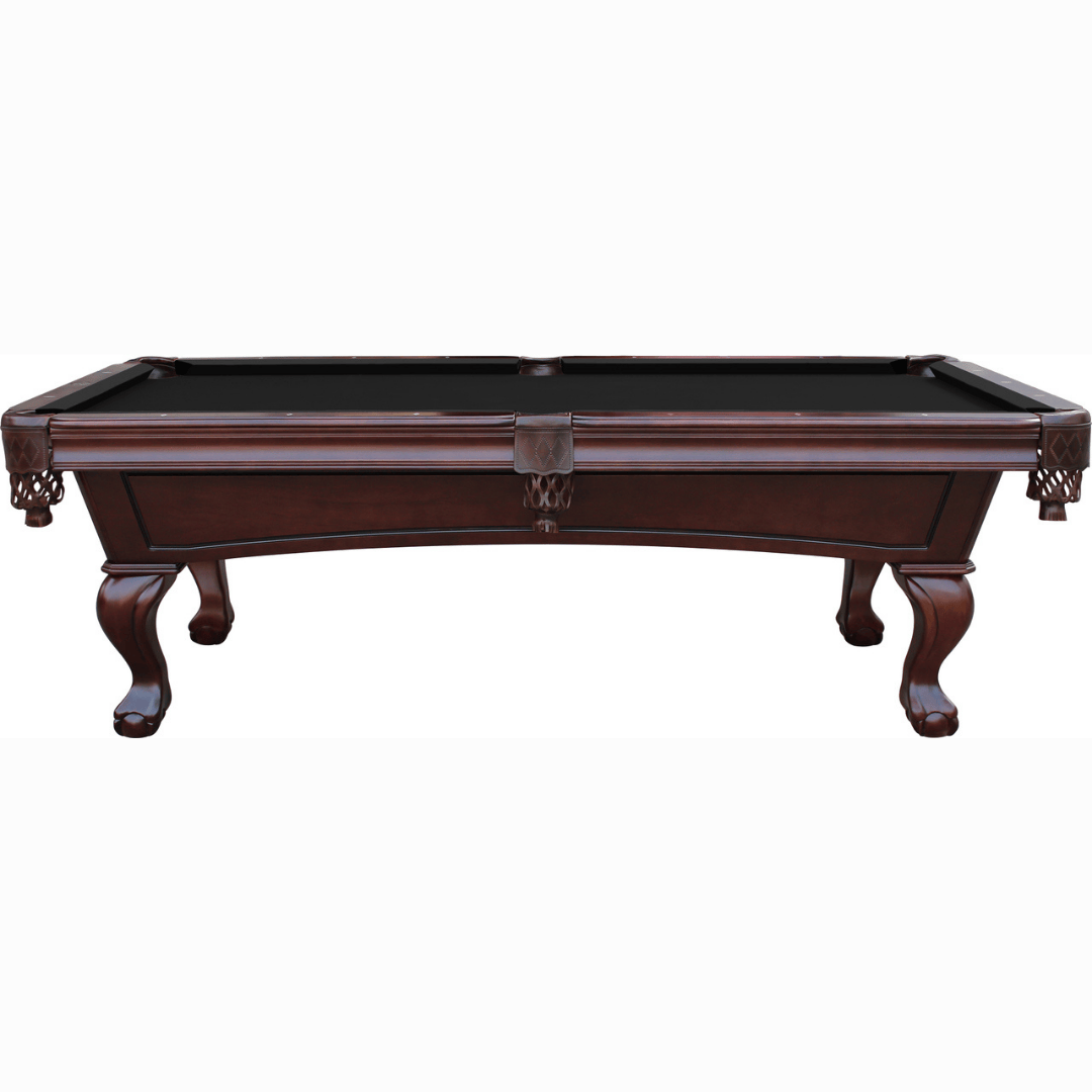 The Playcraft Charles River 8′ Slate Pool Table is part of the Fairfield collection and brings traditional furniture-grade craftsmanship to the billiard room. Select hardwoods with deep carved accents, cabriole legs with carved ball and claw feet, and a hand-rubbed Chestnut or Espresso finish make this a pool table that reads as a serious piece of furniture first — and plays like a serious pool table second.
