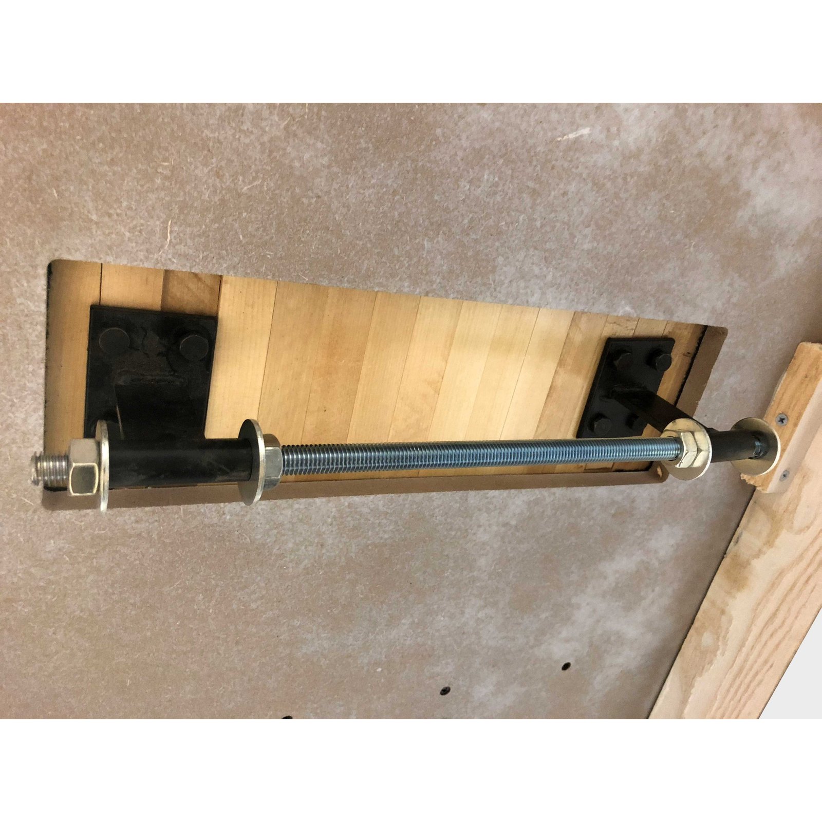 - 15” wide by 1-3/4” thick solid hardwood butcher block playfield finished with multiple coats of polyurethane to create a smooth, satin surface