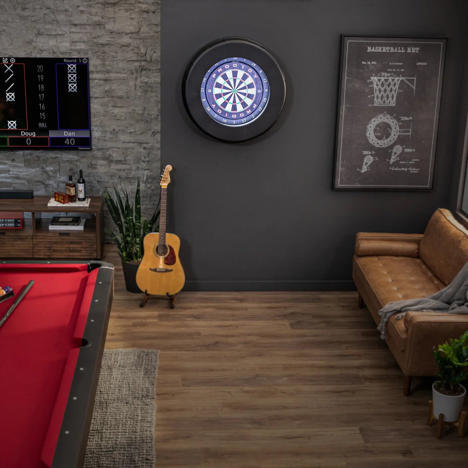 The Prodigy Automatic Bristle Dartboard System is revolutionizing the game with patent-pending bi-ocular dart recognition technology and state-of-the-art location algorithms, making it the most accurate smart dartboard available. Designed for serious players and casual enthusiasts alike, this high-tech dartboard delivers authentic steel-tip play with fully automatic scoring, real-time mobile app integration, and immersive 360-degree LED lighting for tournament-quality conditions.
