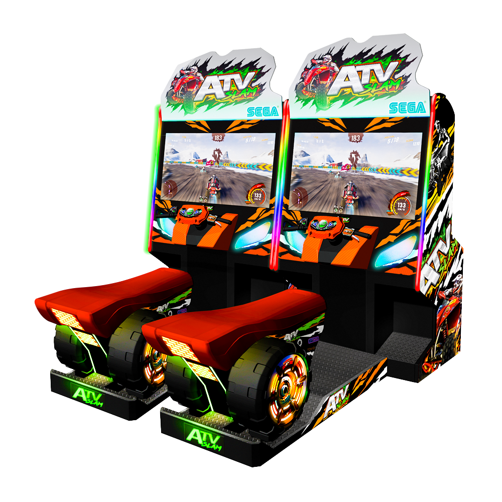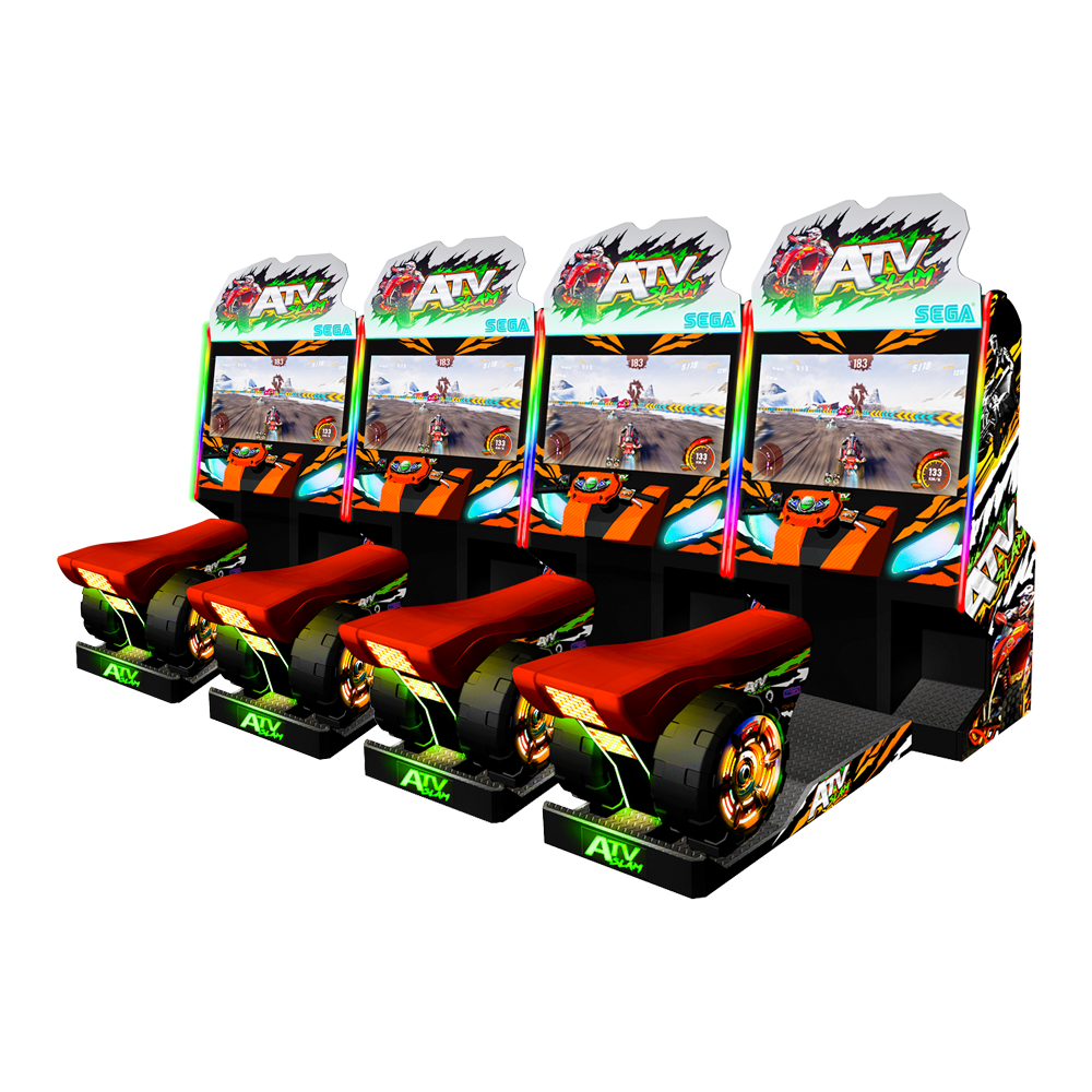 ATV Slam is now available in a standard non-motion cabinet. The new design features a smaller footprint but can still link up to 4 players for a true off-road racing experience and maintains the same thrilling gameplay as the Deluxe cabinet.