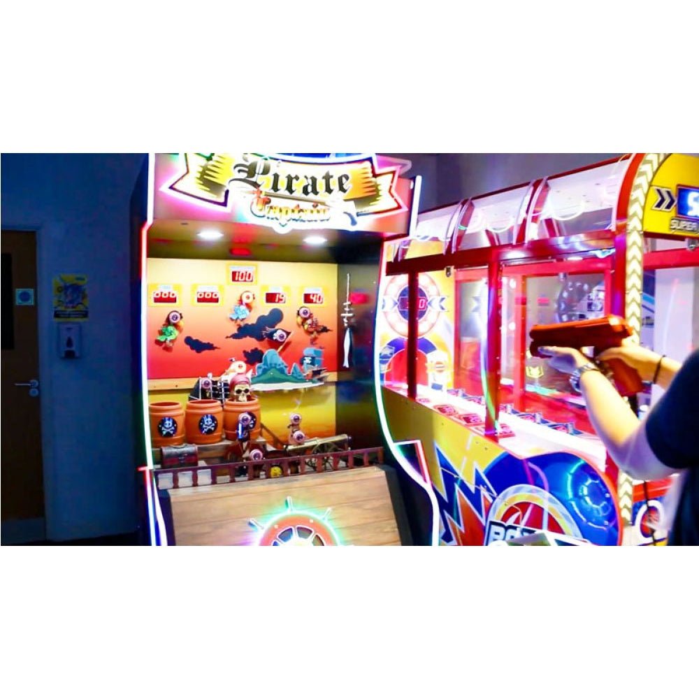 What makes this game a winner in any arcade or FEC is the detailed moulded targets such as birds, a canon, explosive barrels, animated flag and the pirate captain who moves side to side to dodge shots.