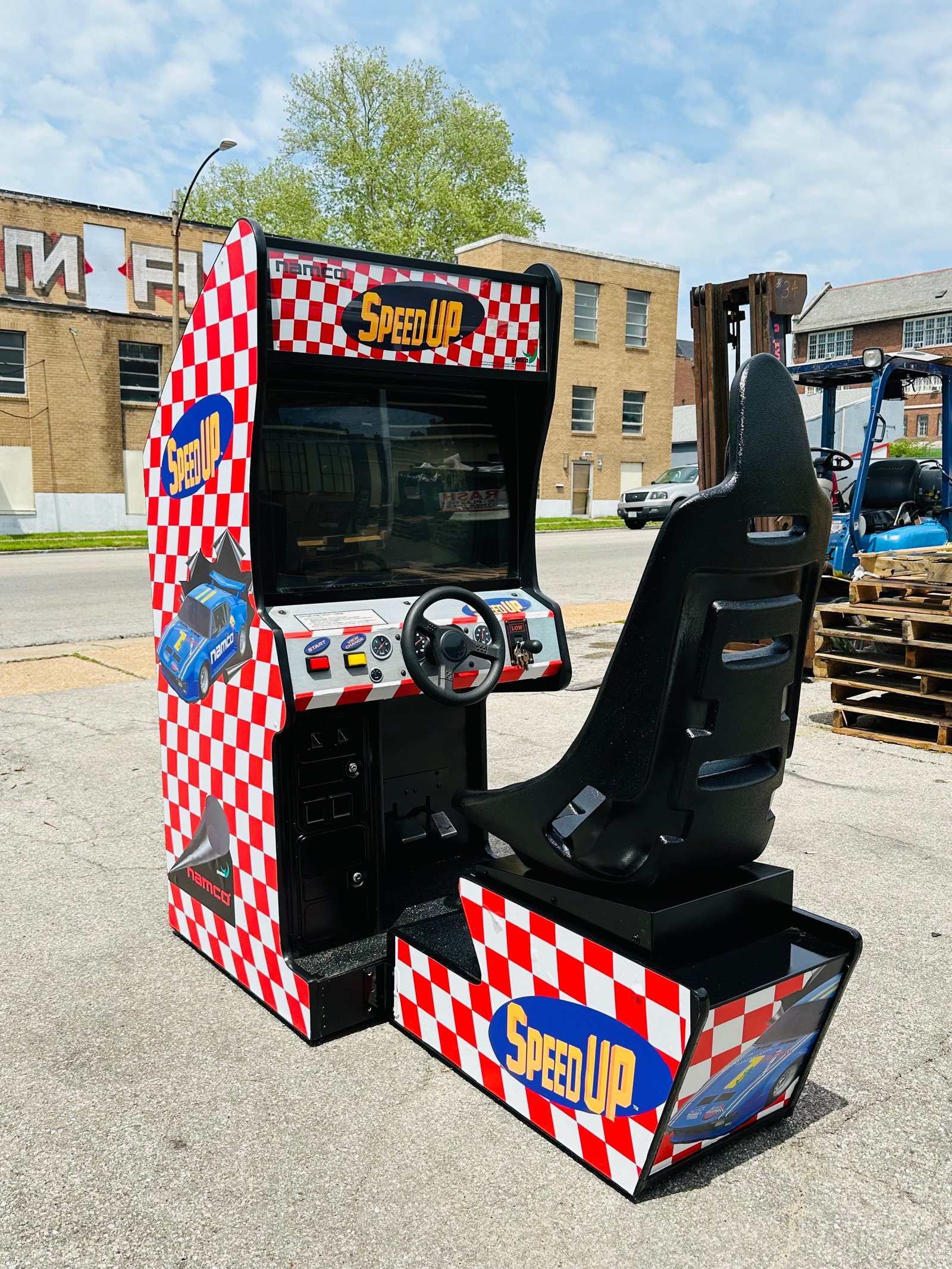 SPEED UP DRIVING GAME REFURBISHED- NEW MONITOR-HEAVY DUTY, COIN OPERATED, COMMERCIAL GRADE WITH FREE PLAY OPTION