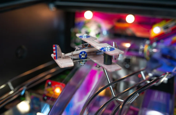 • This pinball machine’s Climb Feature challenges players to shoot the CLIMB arrows, advancing up the building to earn rewards.