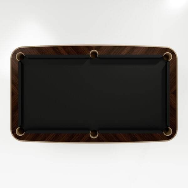 The Morris Modern Slate Pool Table is the epitome of luxury, named after a renowned American cue sport player. It is expertly handcrafted and comes in 7ft, 8ft, or 9ft options. The slate top is covered with a premium fabric from Simonis, a respected Belgian company known for its high-quality billiard cloths. This exquisite table features a sleek design, with a structure entirely covered in leather and pockets and upper sides embellished with Noce canaletto or Ebony Makassar veneer. Designed for professional use, it offers optimal precision and balance, thanks to the use of slates. Its superior materials and clean lines make it a stand out in the world of pool tables. This table exudes elegance and sophistication with its smooth leather surface, reminiscent of a custom-made suit.