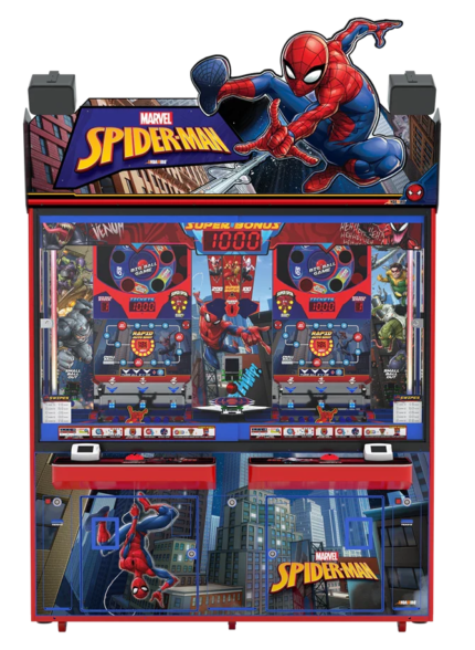 Spider-Man Coin Pusher by Andamiro: One-Player and Two-Player The Spider-Man Coin Pusher, made by Andamiro Co. Ltd. and licensed by